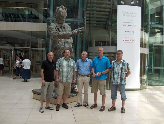 Im überdachten Innenhof wurden wir von einer Bronzeskulptur Willy Brandts, die nachdenklich in dei Ferne weist, begrüßt.